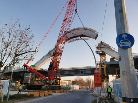 此外,羅寧路橋的張拉空間狹窄,部分區域起吊受限。團隊自主研發狹小空間張拉工裝、拱肋翻身吊耳等專用設備,解決了現場的張拉和吊裝問題,并引入橋樑實時監控系統,確保3000噸鋼結構體系在吊裝過程中和成橋後的安全穩定。