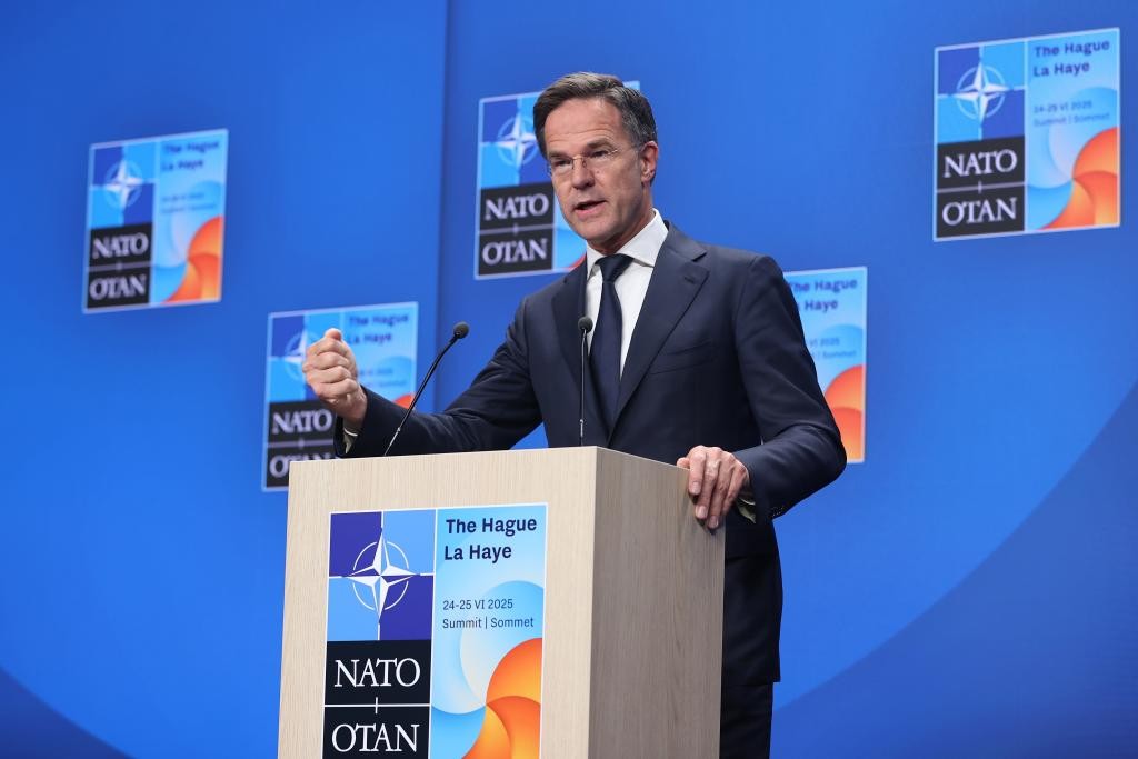 6月25日,北約秘書長呂特在北約峰會期間出席新聞發布會。新華社資料圖片。