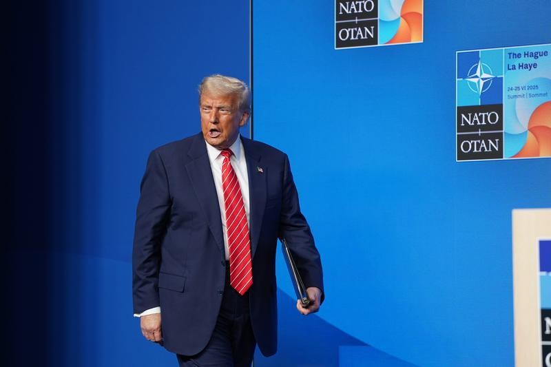 6月25日,在荷蘭海牙,美國總統特朗普在北約峰會期間出席新聞發佈會。圖源:新華社