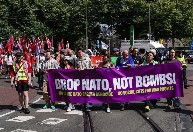 6月22日,民眾在荷蘭海牙參加反北約集會。圖源:新華社