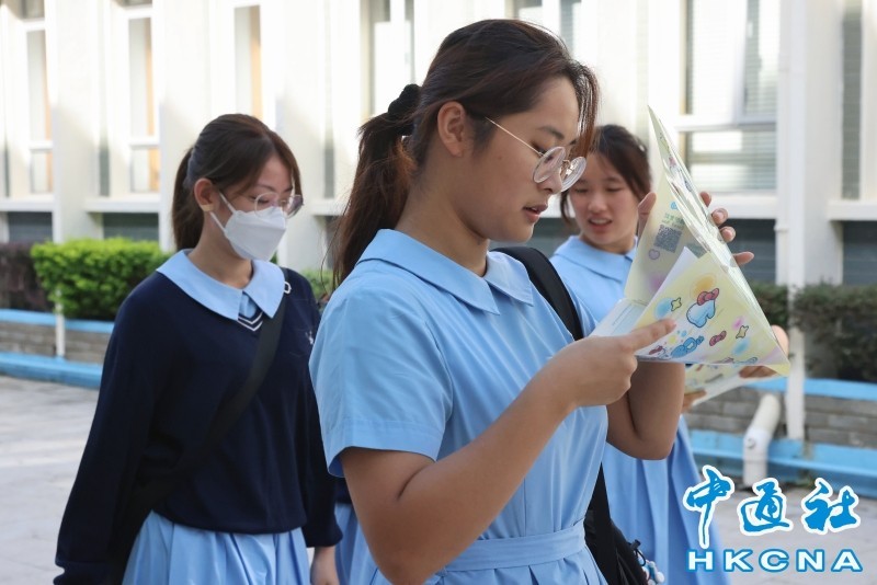 7月16日,2025年香港中學文憑試(DSE)正式放榜。圖為學生在查看成績。(香港中通社記者 謝光磊 攝) 香港中通社圖片