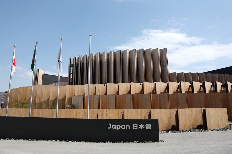 這是4月14日在日本大阪世博會園區內拍攝的日本館。圖片來源:新華社