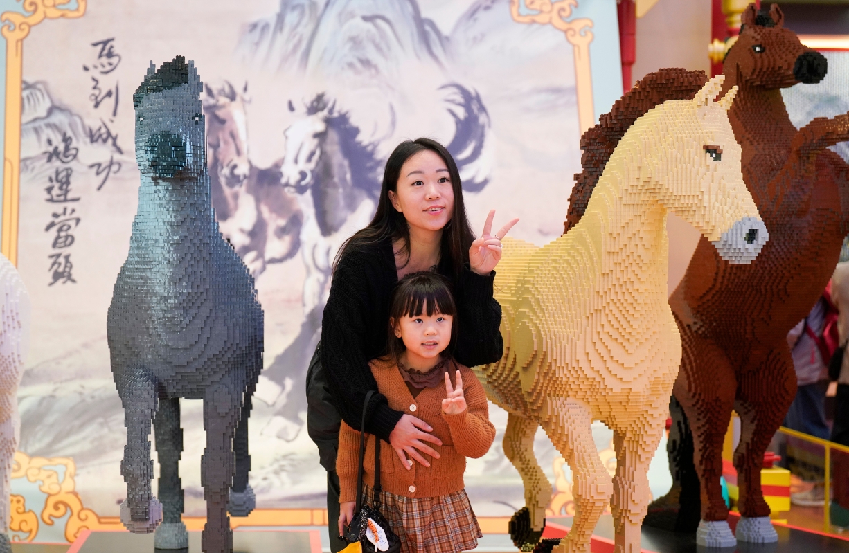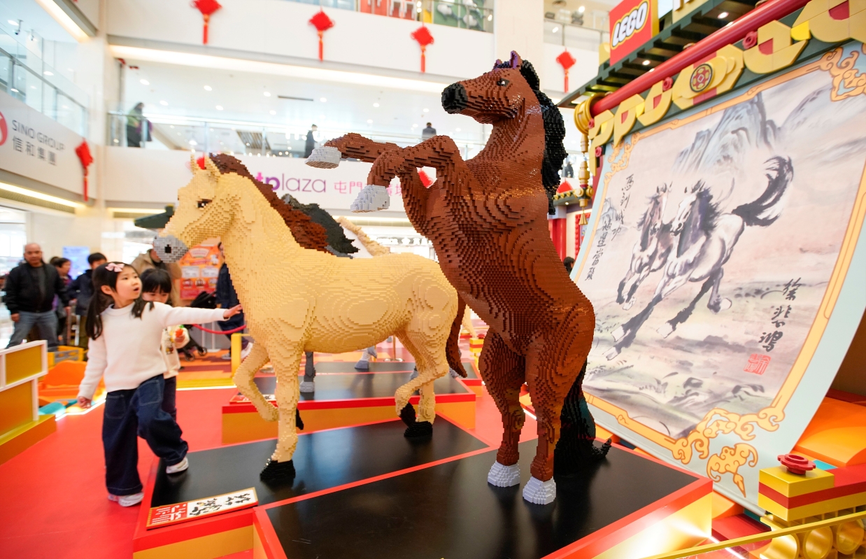 香港新聞網2月1日電(記者 陳奕啟 ) 屯門市廣場聯乘 LEGO香港共同打造新春駿藝樂園,以 LEGO顆粒重現“近代中國國畫之父徐悲鴻大師”的經典作品《六駿圖》,透過近40萬粒顆粒砌出兩組巧奪天工、磅礴奔騰的駿馬藝術作品,象征新一年馬到功成!樂園在1月30日至3月4日對公眾開放。2月1日週日,展覽現場吸引市民爭相與駿馬藝術作品合影留念。