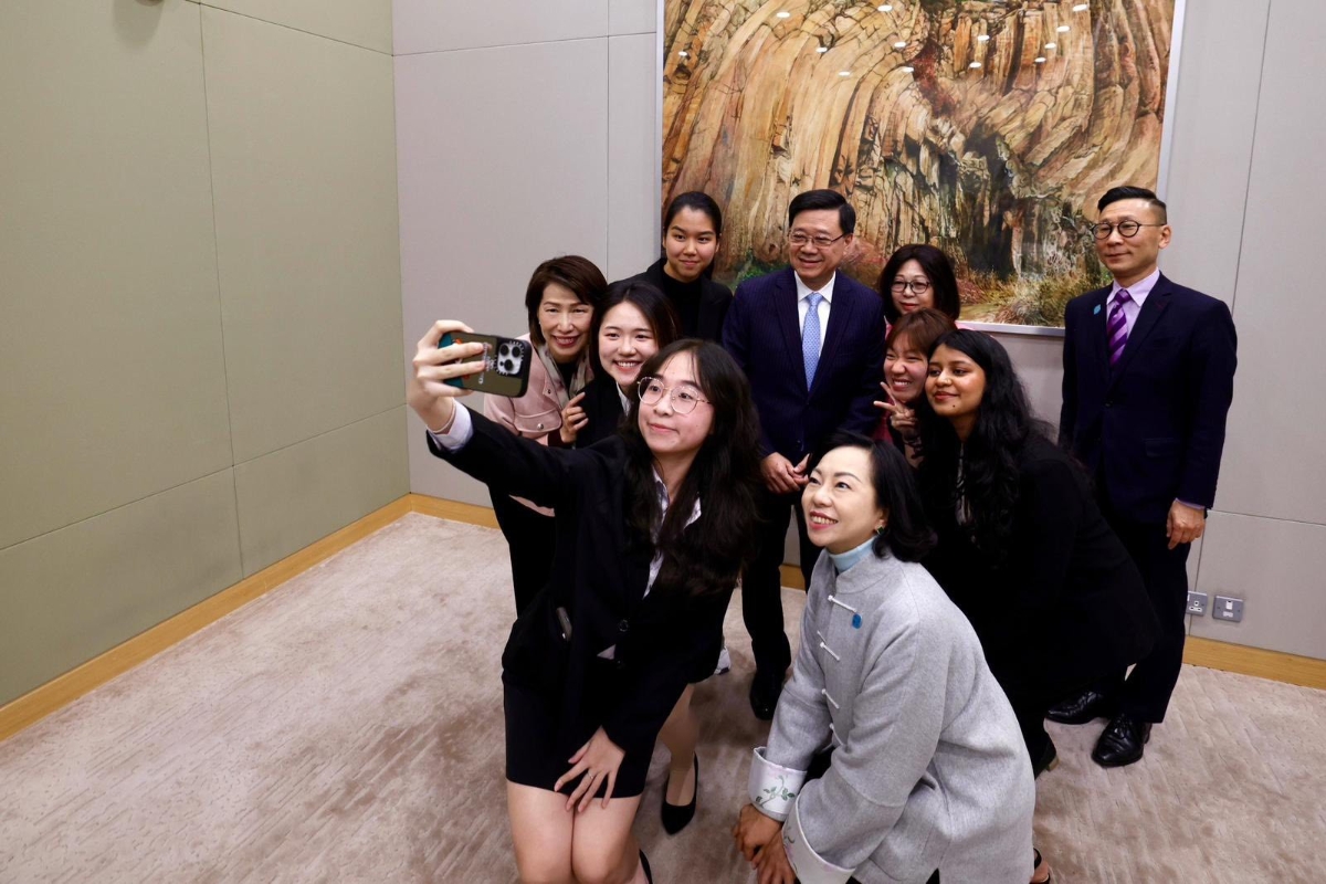 香港新聞網3月8日電 3月8日是國際婦女節。香港特區行政長官李家超8日出席2026年國際婦女節酒會前偕同夫人李林麗嬋與數名“‘友’妳啟導”友師計劃學員會面。