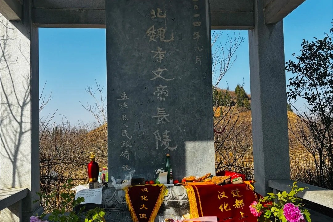 北魏孝文帝元宏(原名拓跋弘)的墓前,掛上了“漢化大使”的錦旗,也有獎狀寫著“佳漢化組”,用以紀念這位鮮卑族皇帝力推漢化的舉措。