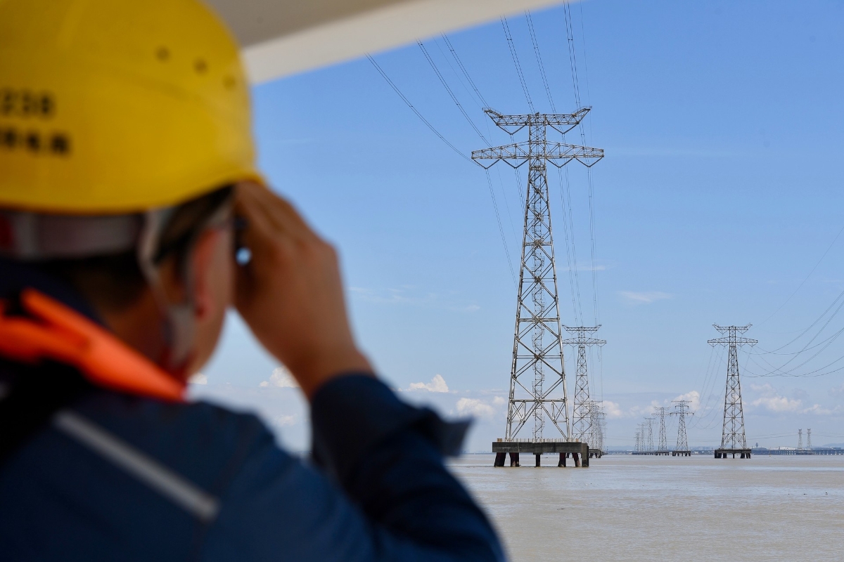 資料圖為深圳供電局輸電管理所送電線路工海上巡視。香港中通社圖片